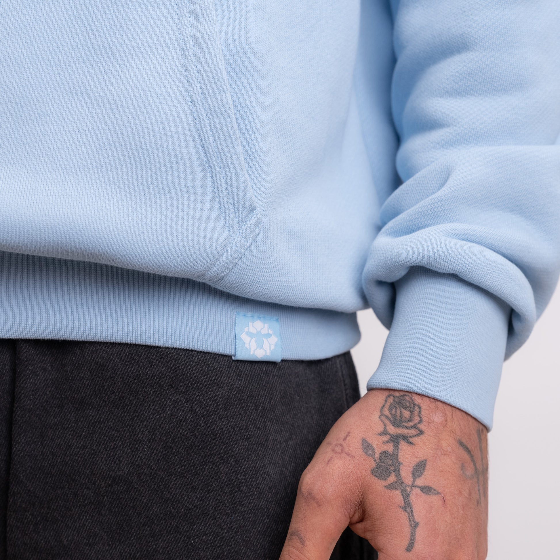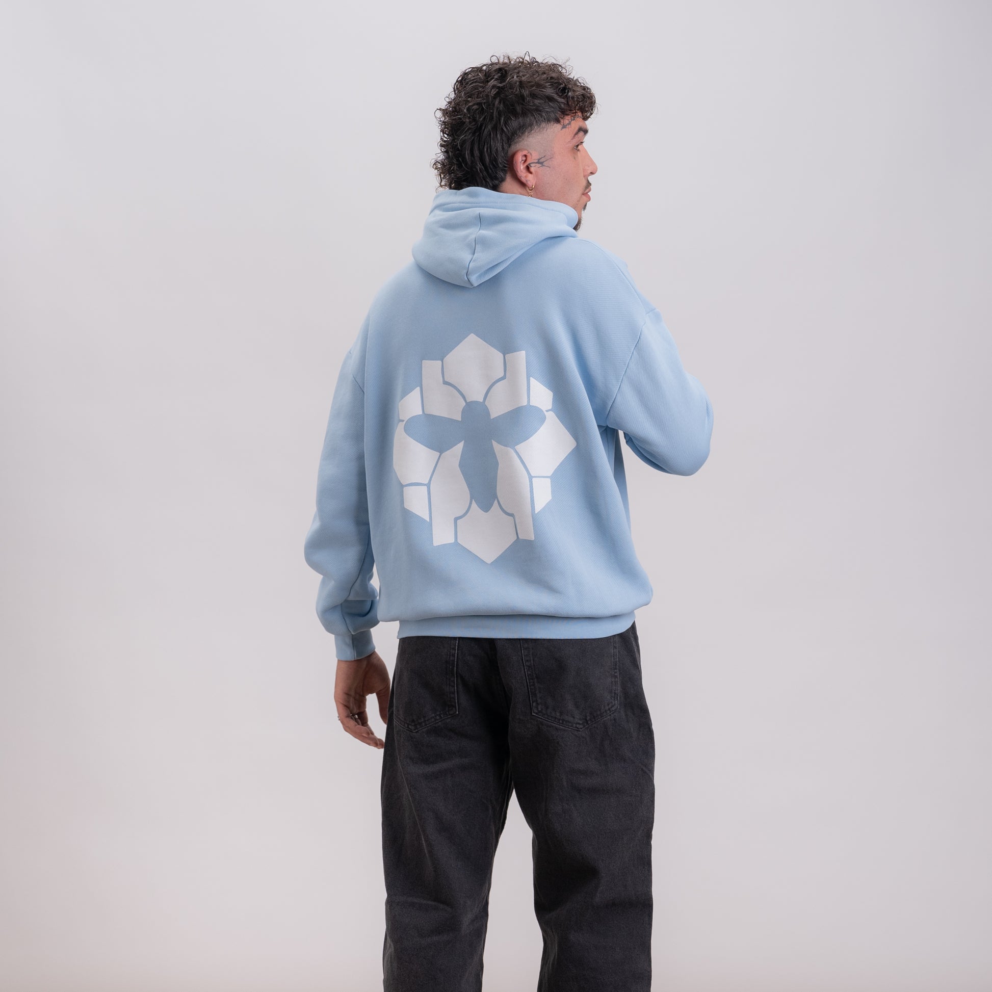 Your everyday layer for rave season. A oversized, classic HIVE hoodie in baby blue that keeps you warm after a long night.