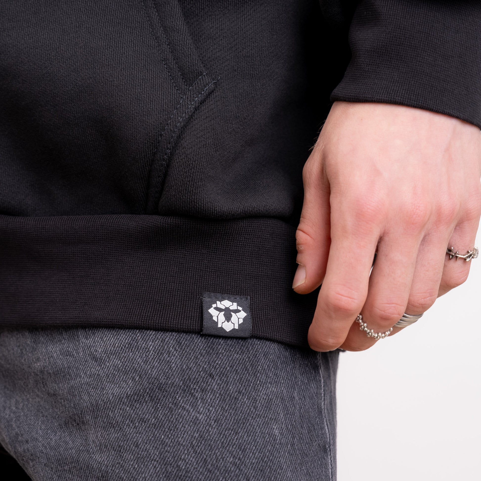 Your everyday layer for rave season. Our high-quality hoodie in black keeps you warm between the club, the afters, and the ride home. Finished with a precise HIVE tribal touch.