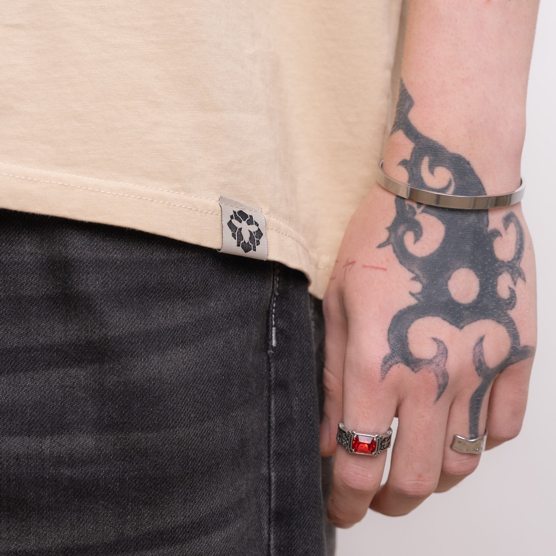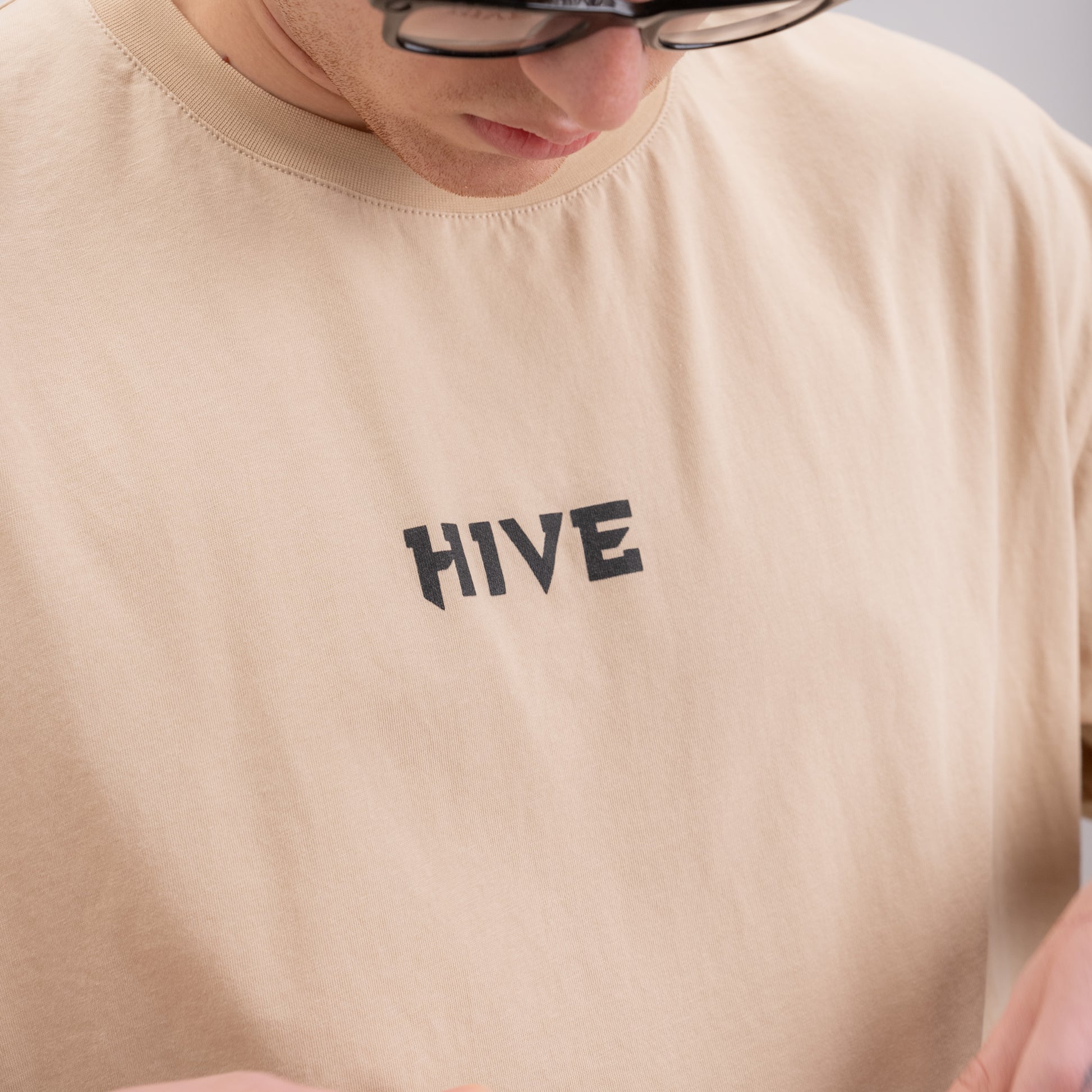 Classic, oversized t-shirt in beige with attitude that stands out in the crowd.