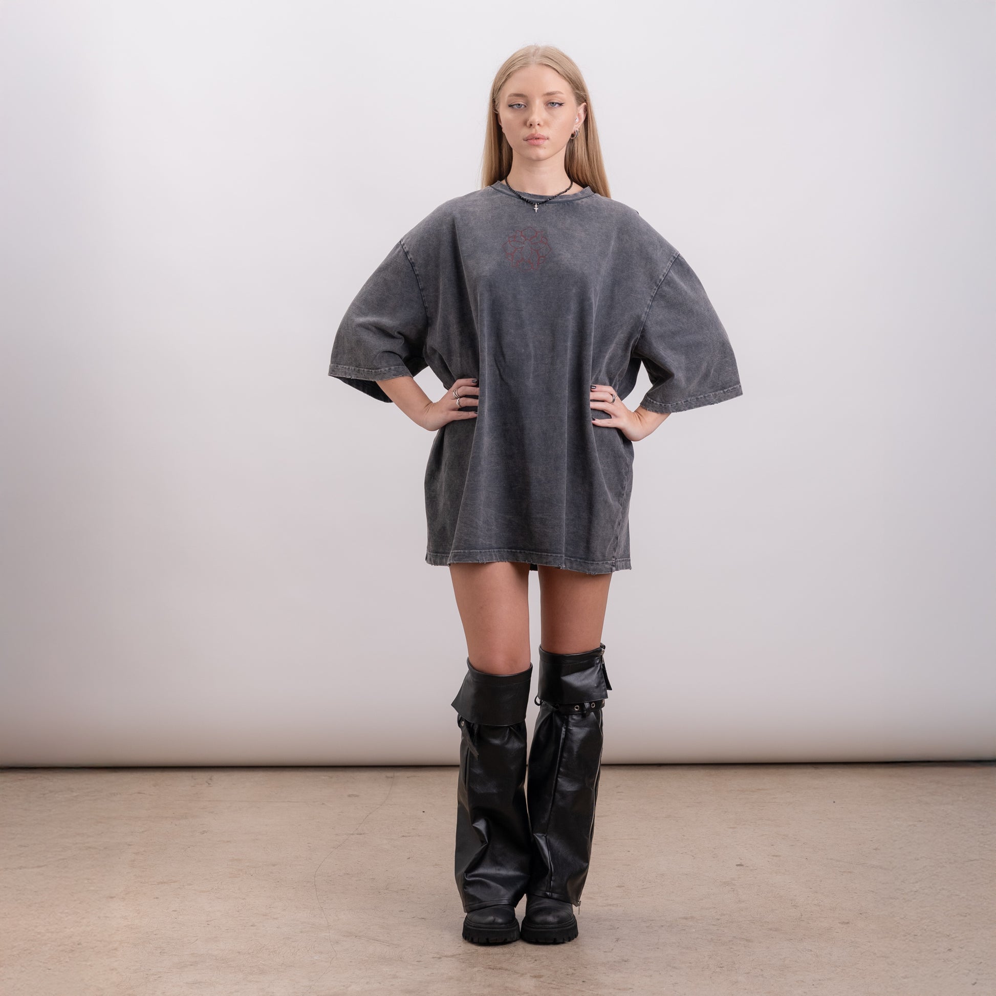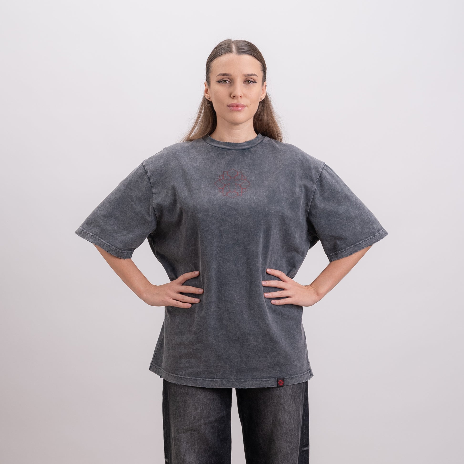 A club ready heavy-washed, distressed and oversized shirt, finished with a precise HIVE tribal touch.