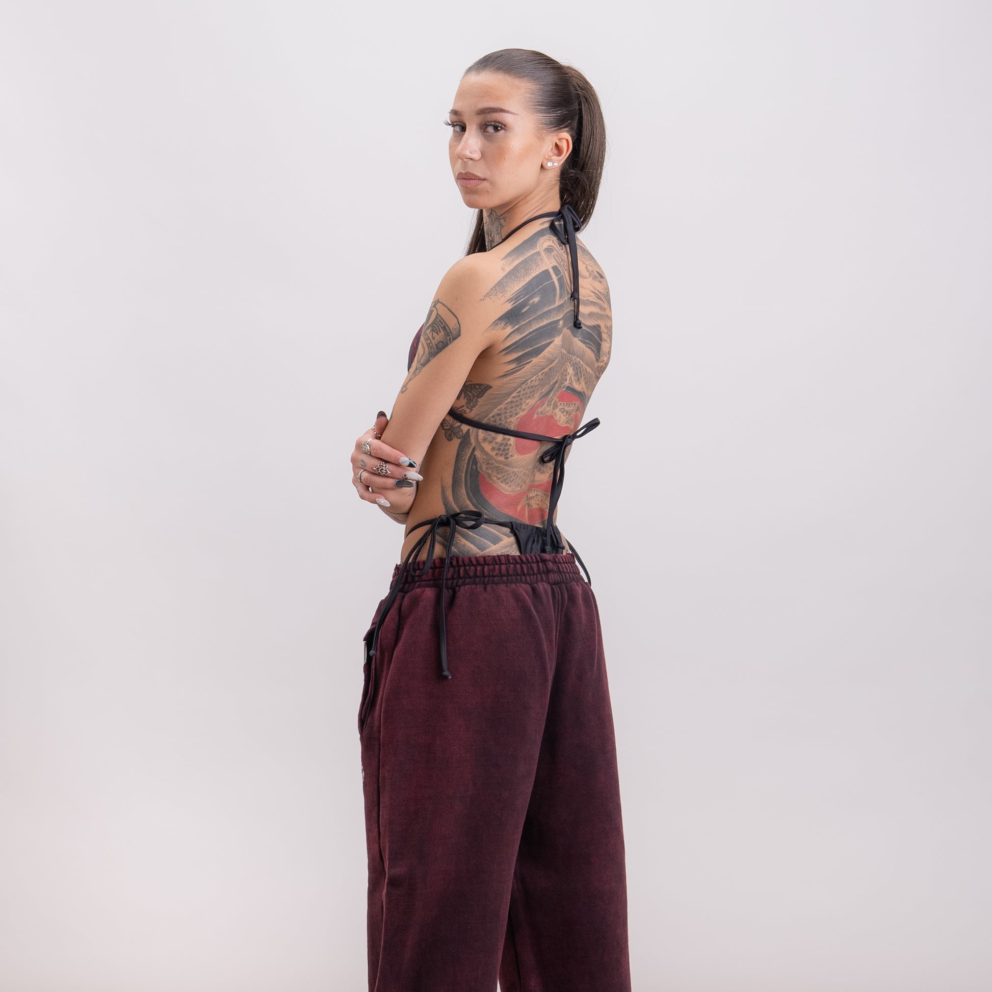 The first. brunette model is 162cm tall and wears size XS-S.