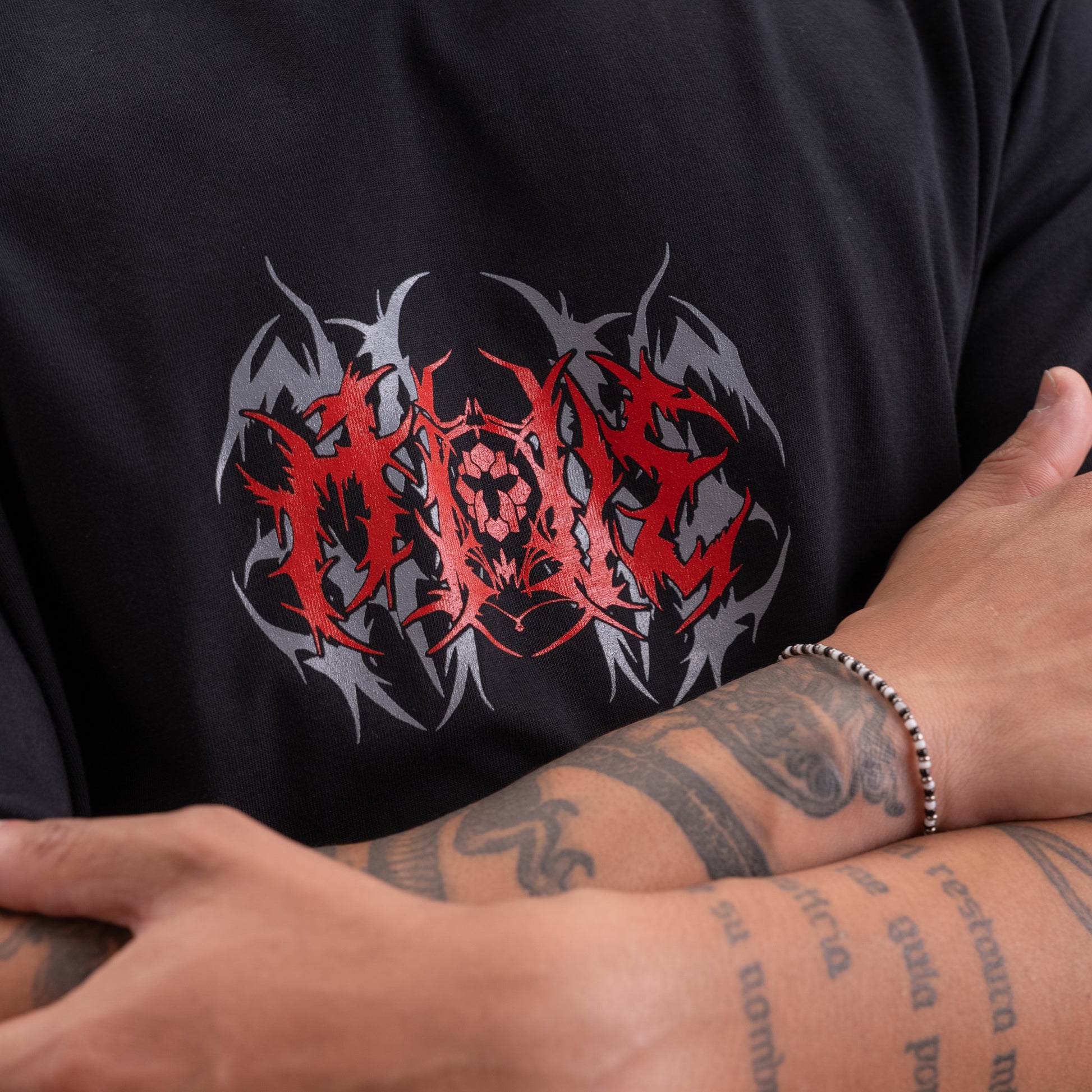 Minimal black on the outside with an oversized fit, finished with a precise HIVE tribal touch.